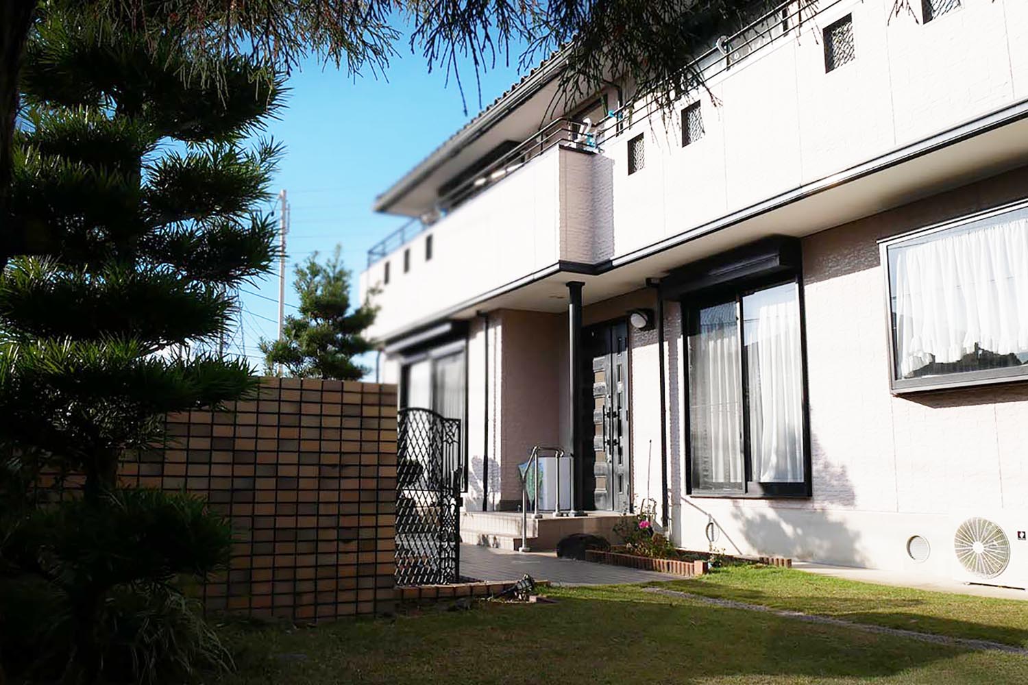 玄関からは大きな吹き抜けがあり明るい建物です。庭も広く、バーベキューなどを定期的に行っています。